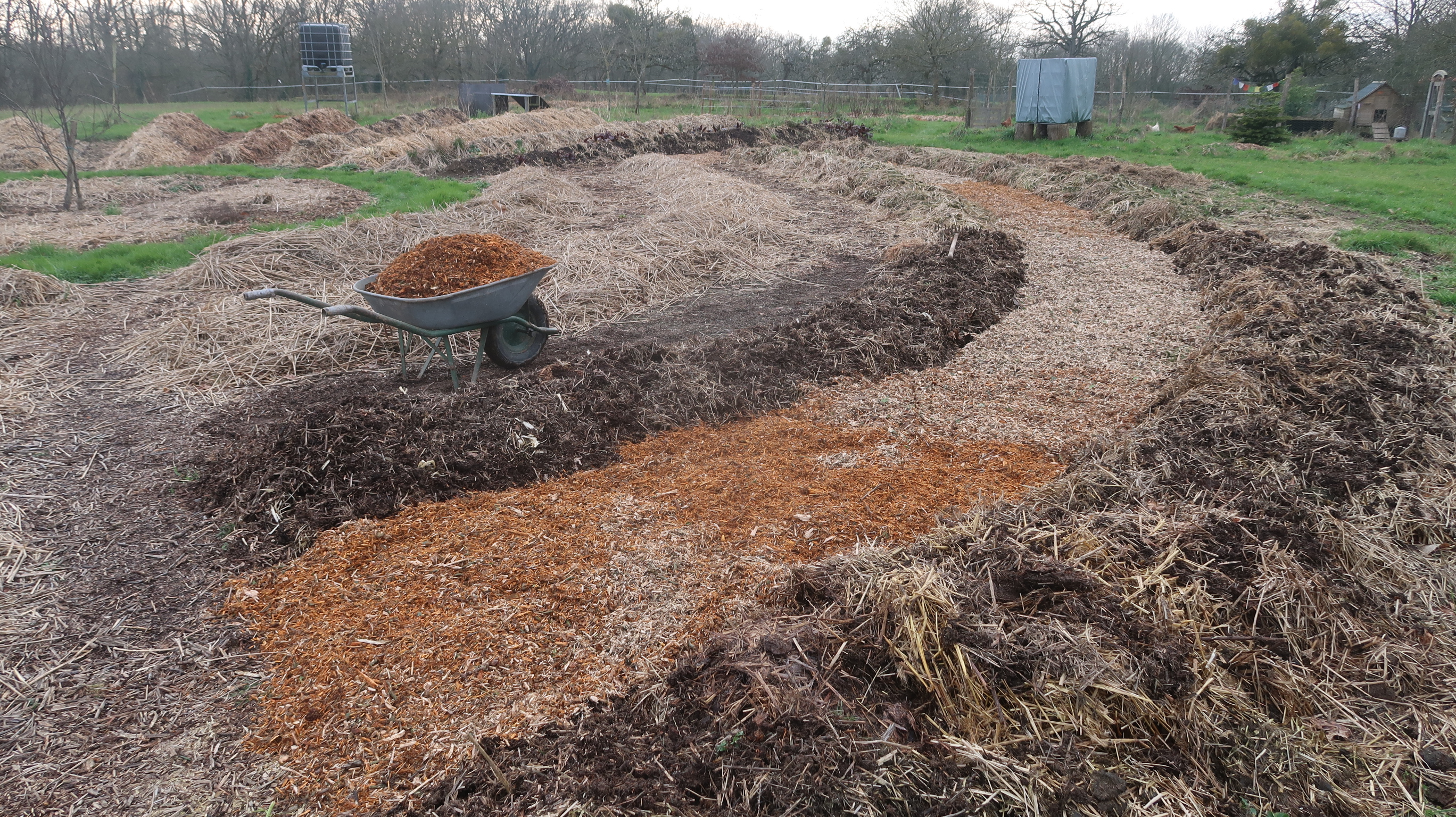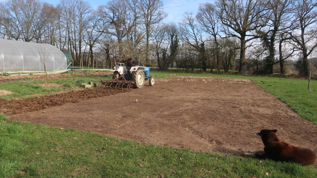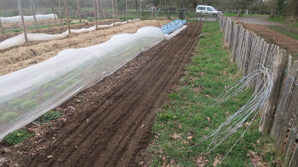 Nous voilà mi-février, il est temps de préparer l’emplacement des pommes de terre de conservation 🥔dont la plantation se fera fin Mars. Et oui, cette année, nous nous sommes équipés d’une planteuse à pomme de terre 🚜. Alors, on va essayer ça ! Il y aura entre les rang des haricots verts nain 🌱pour compléter. Un test !