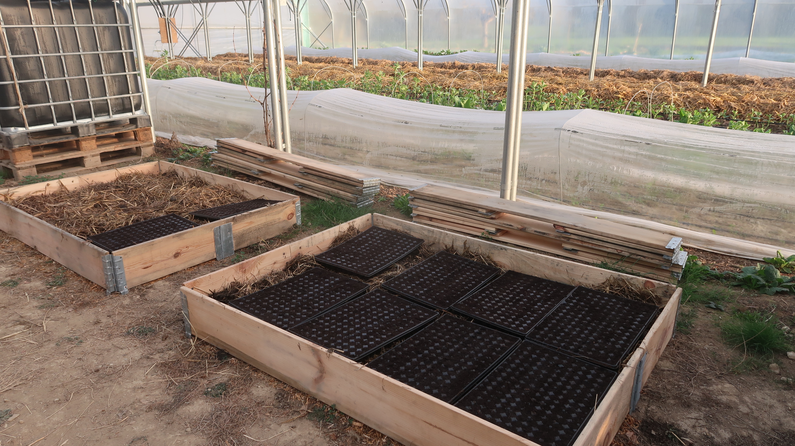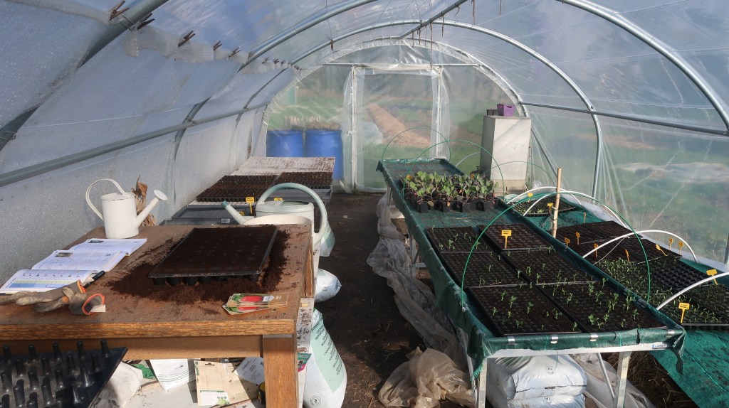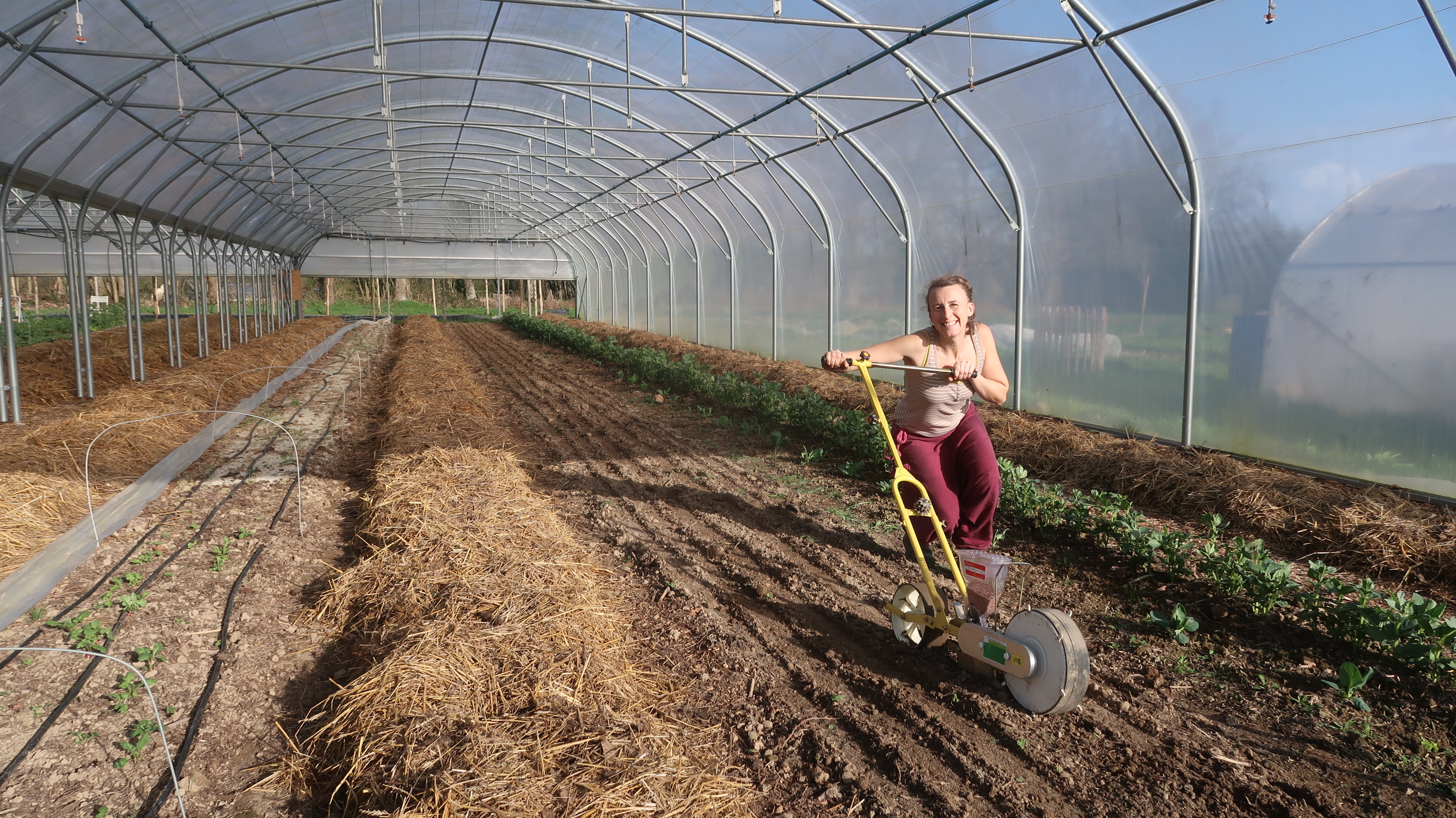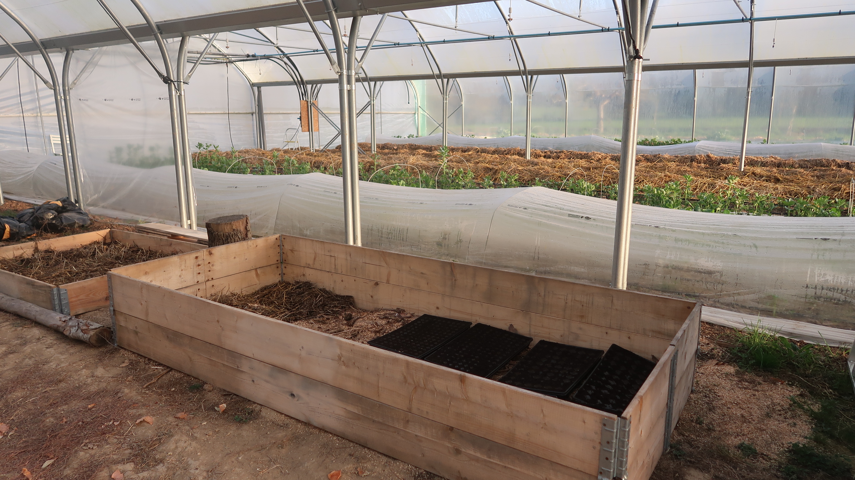Dans les serres, tout est plein ! 🌿 Des carottes de printemps, à la mâche, aux fèves, aux choux et aux pommes de terre, il y en a pour tous les goûts ! 😋 Je continue la préparation des planches pour accueillir les légumes d’été. 🌞 J’ai également semé des radis et planté la suite des choux de printemps. 🥬 Maintenant, y a plus qu’à attendre que tout pousse pour que vous en profitiez !! 🎉