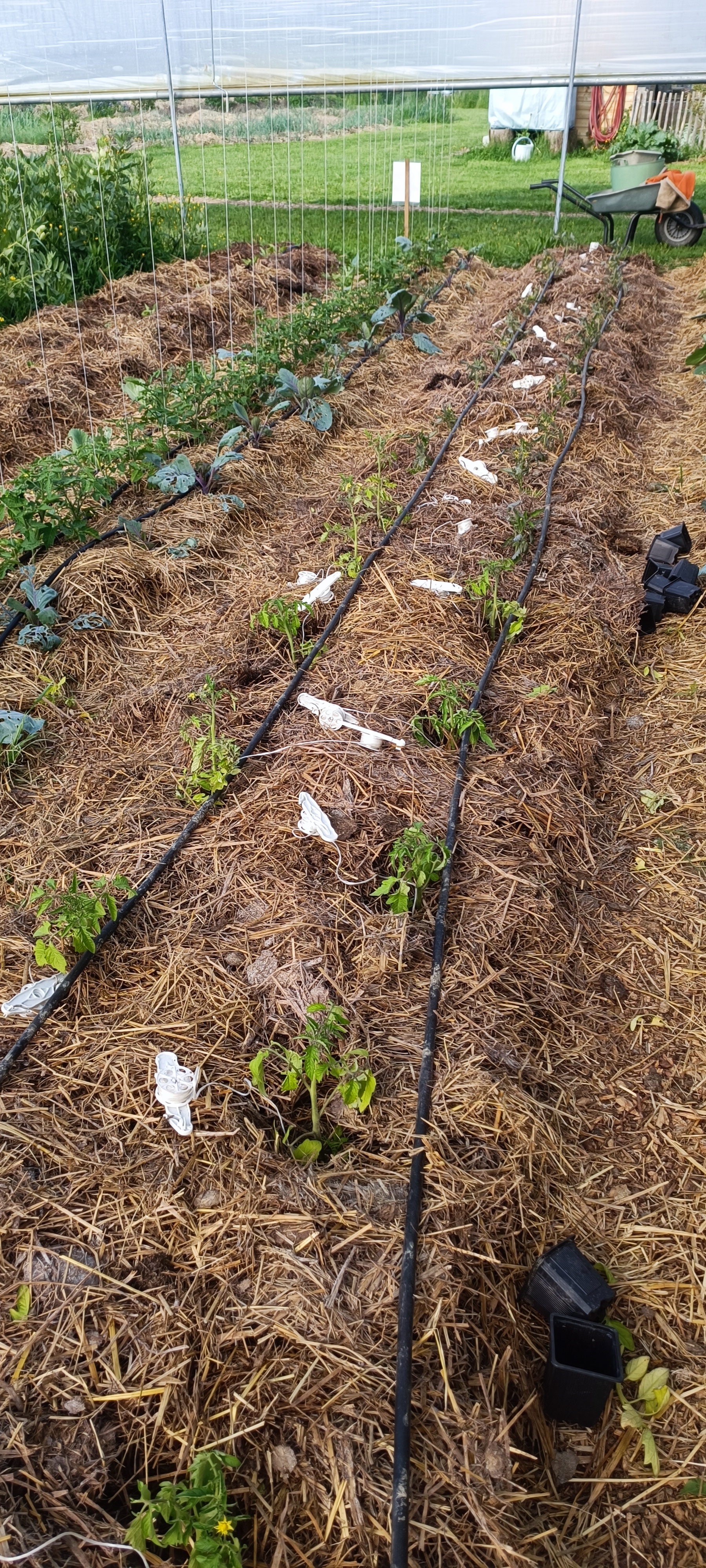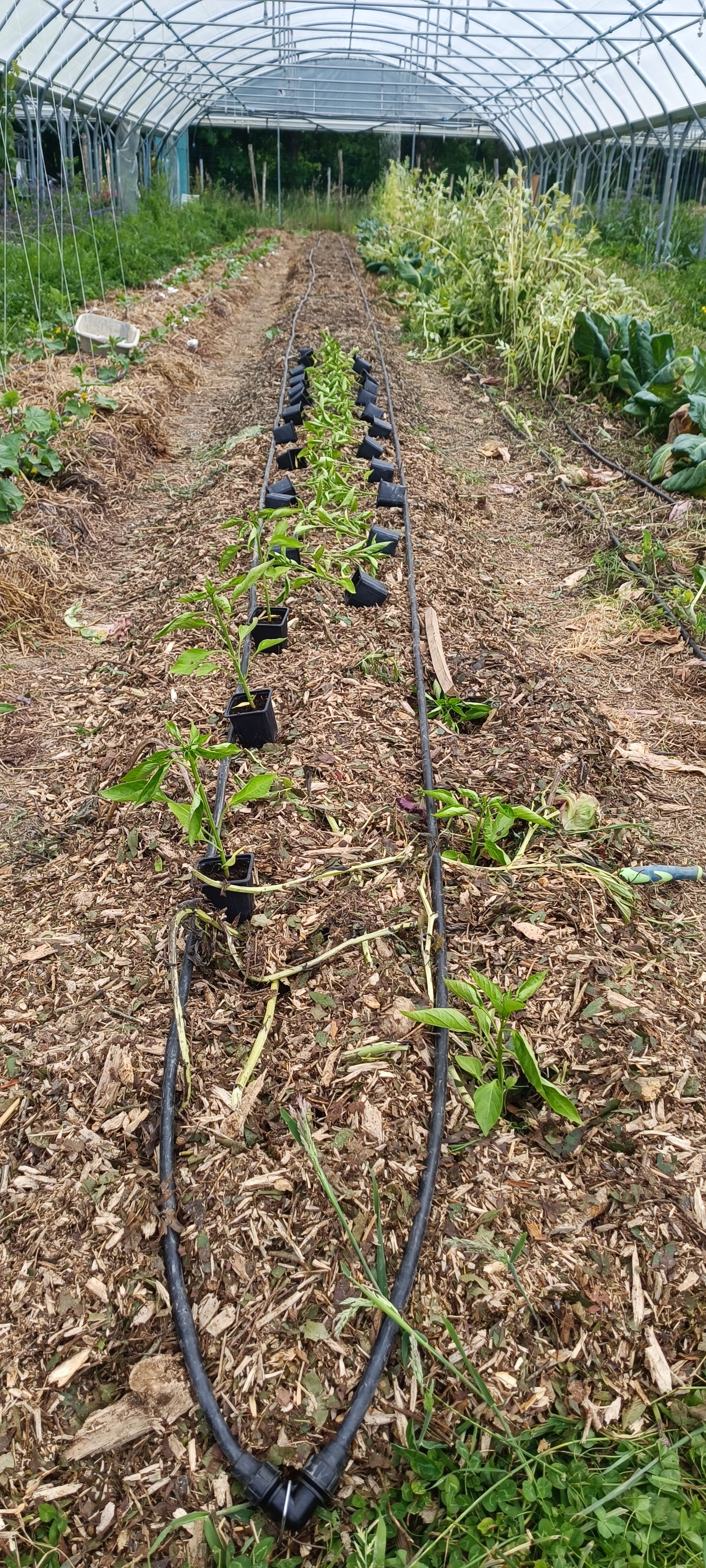 Les poivrons sont installés sous la serre. Un peu tardivement mais, mieux tard que jamais, ahahahah 😅🤣!