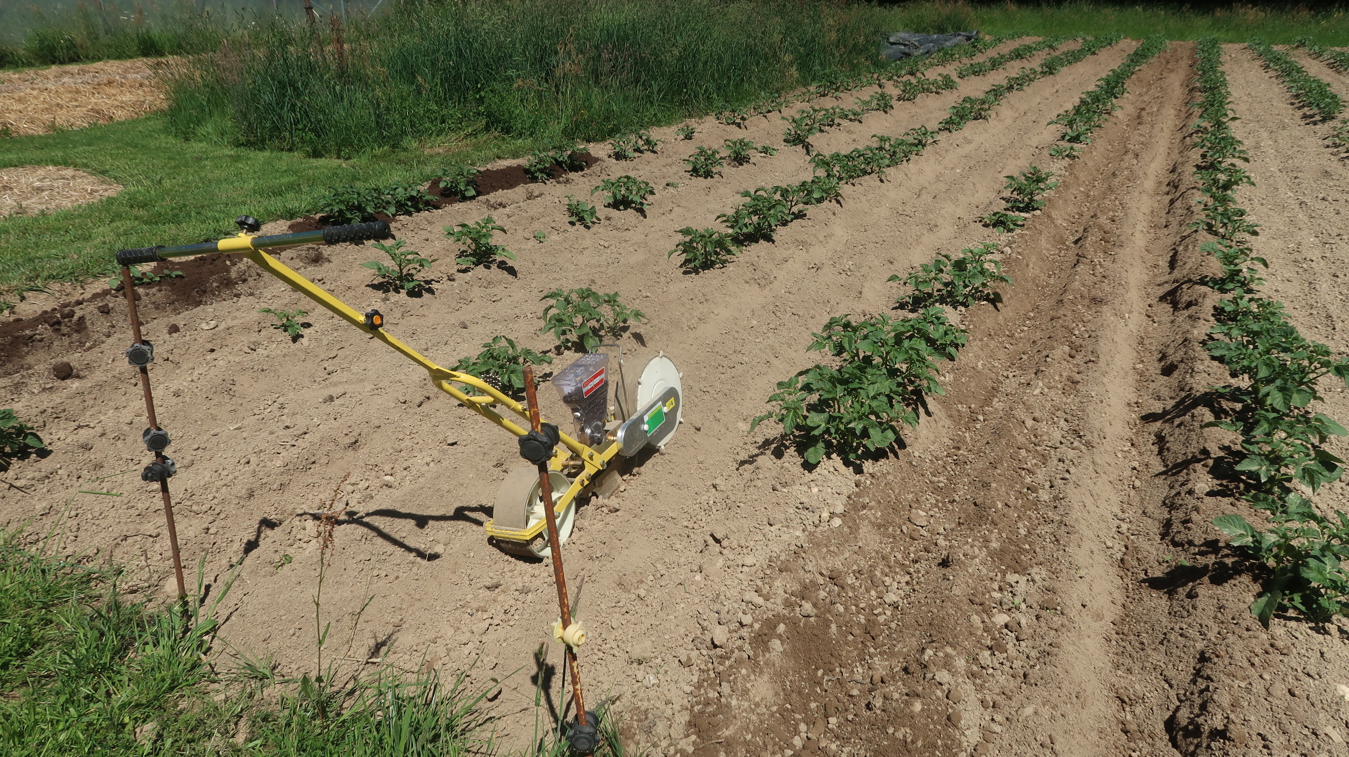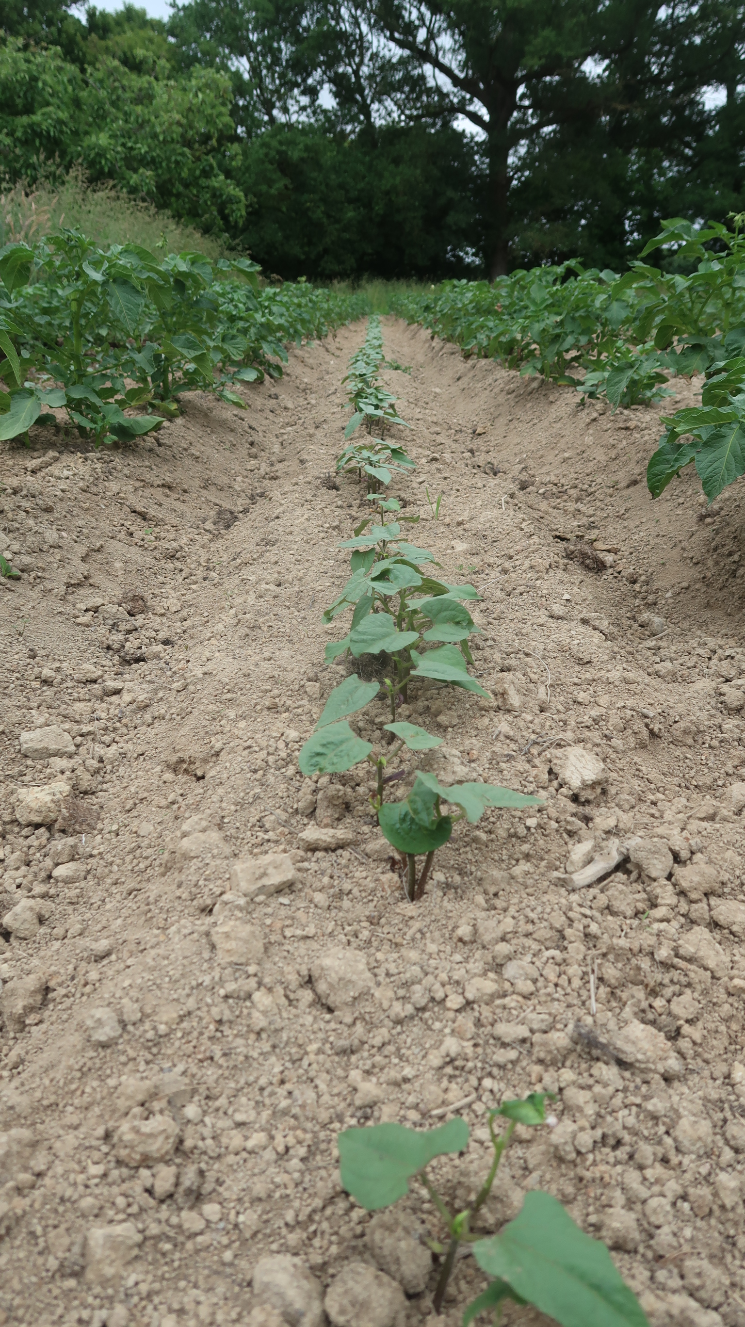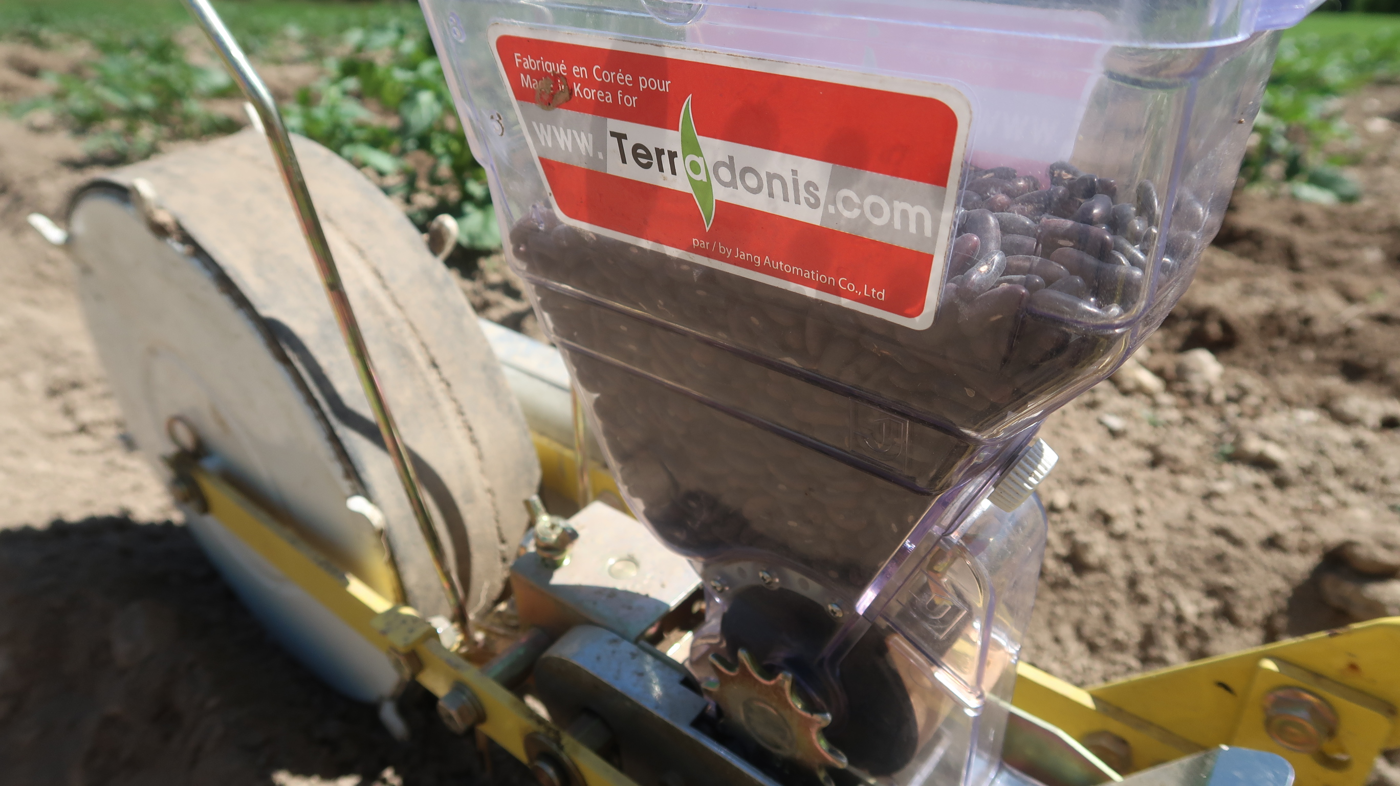 Les pommes de terre profitent bien de ce soleil ☀️ et cette pluie 🌧️ de Mai. Un temps idéal pour que tous nos légumes poussent à merveilles 🌱. Comme les pommes de terre ont été plantées avec le tracteur 🚜. Les rangs sont très espacés. J’ai donc profité des inter rangs pour y semer des haricots verts. Avant cela, on passe un petit coup de motoculteur, on butte les patates et hop le semoir fait le travail.