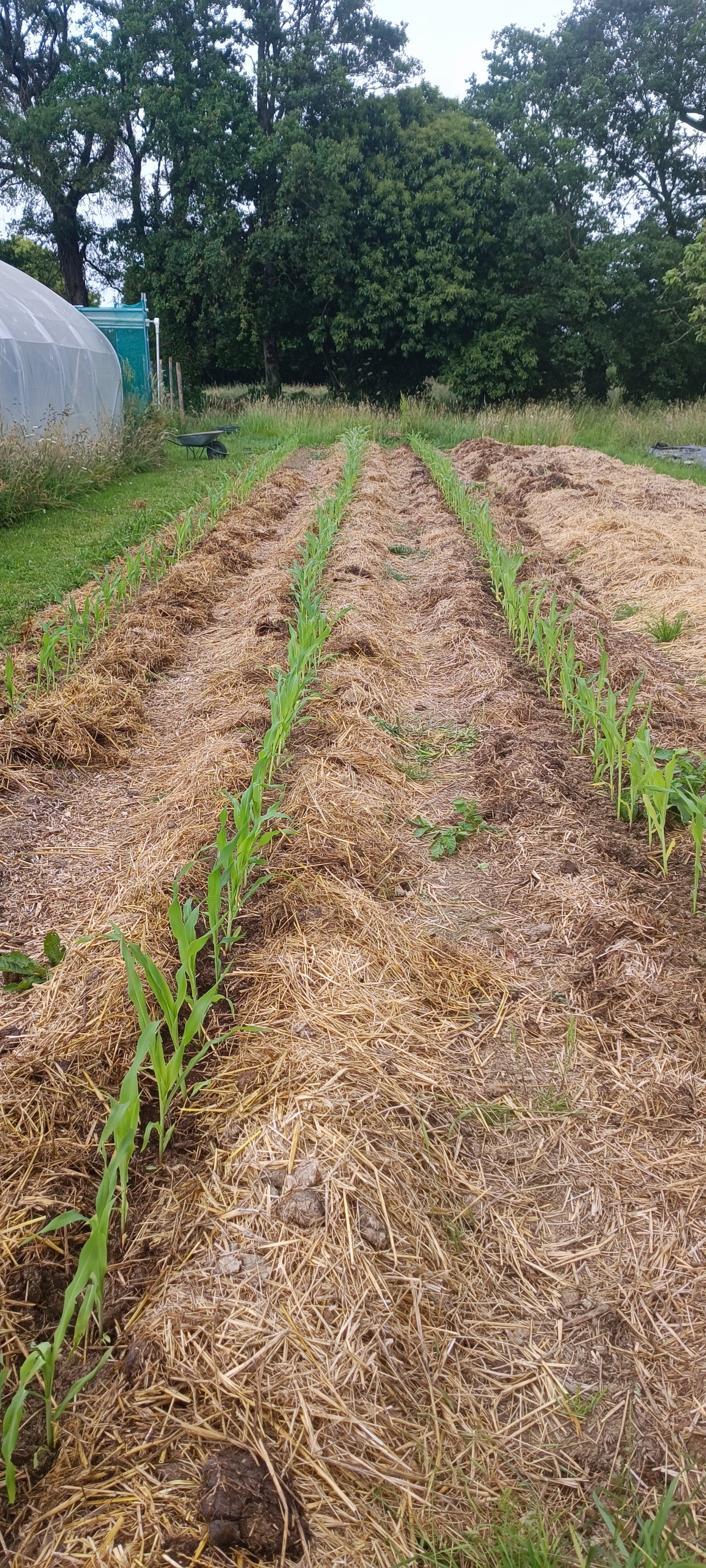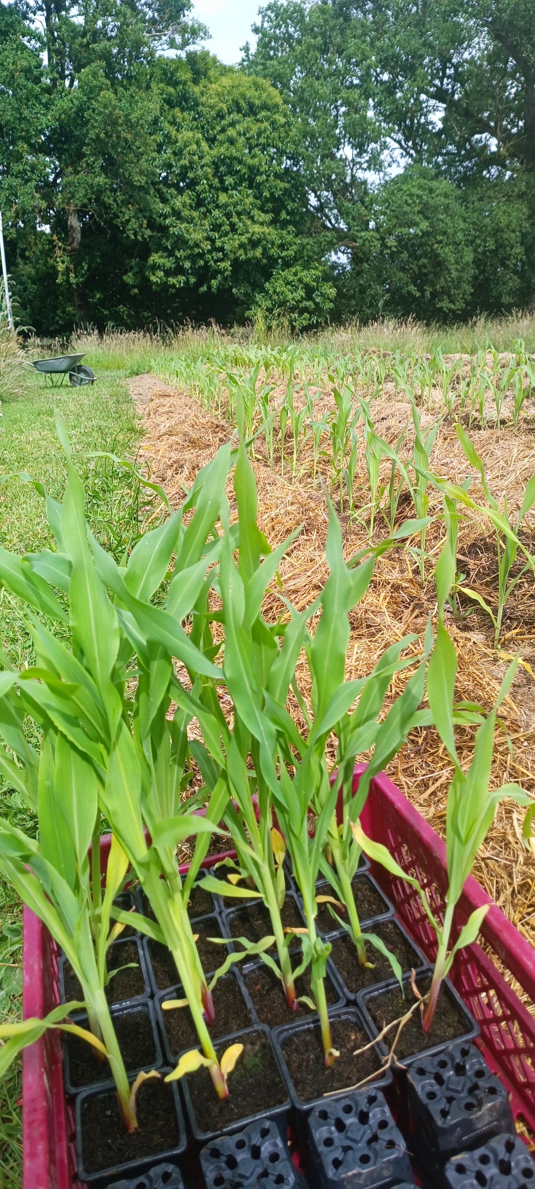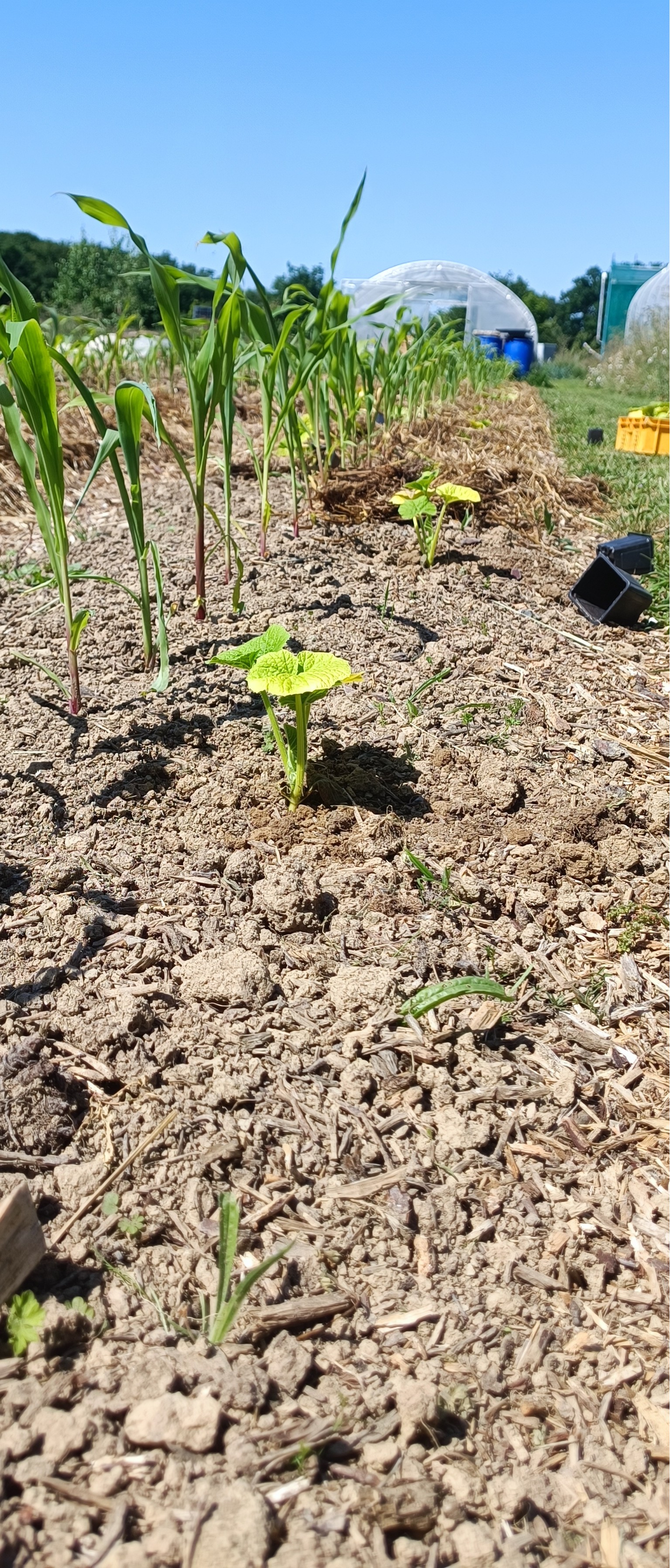 Le maïs 🌽 a pris place dans le nouveau jardin derrière les serres. Il est accompagné des courges 🎃. Cette association est idéale pour question de place. Un jour, je testerai avec les haricots verts à rame.