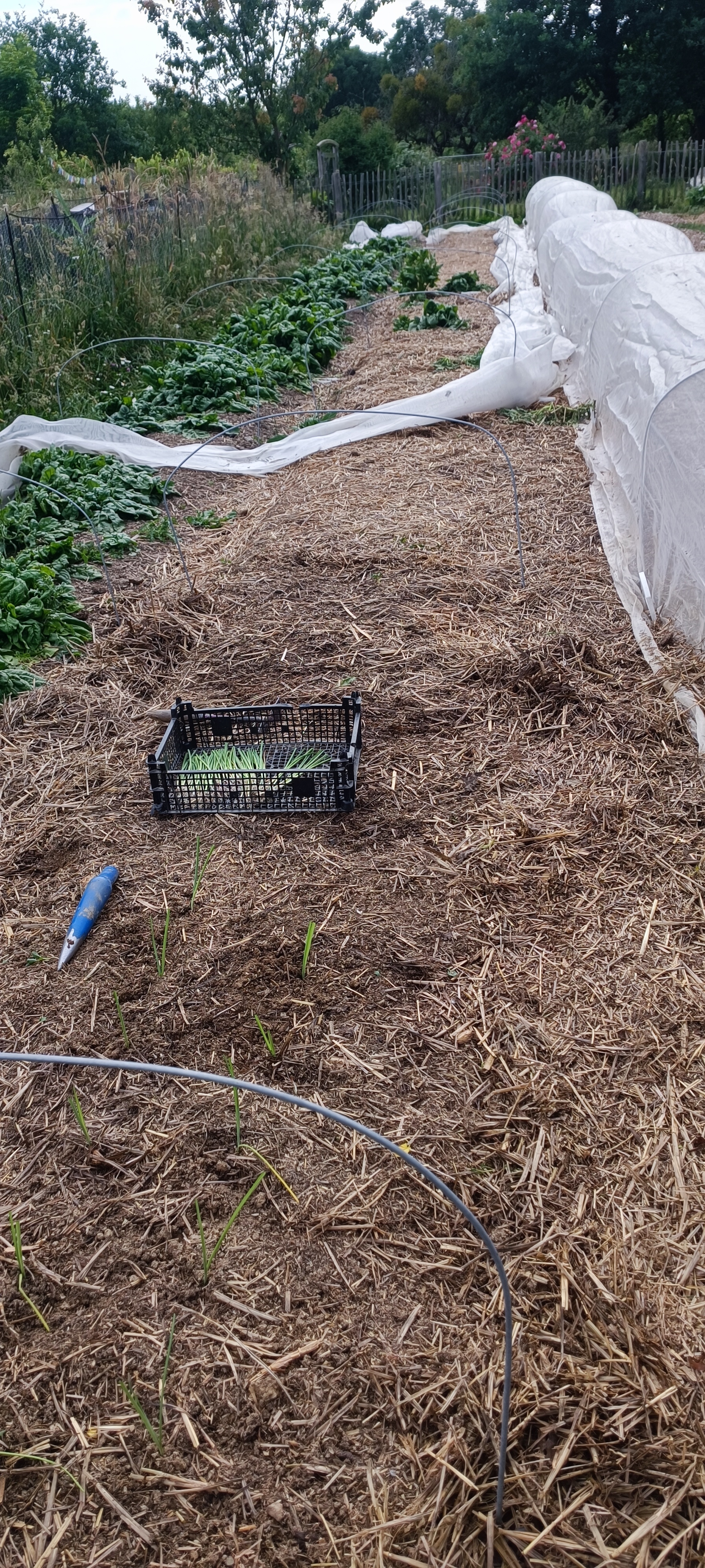 En tout cas, chaque matin, à l’aube, je vais me balader entre les rangs pour faire ma récolte de… LIMACES !!! 🐌😱 Et oui, mon choix de ne mettre aucun traitement fait que je dois composer avec le vivant. 🌱 Donc, pour éviter l’extermination de mes jeunes plants, je dois faire le prédateur ! 🦊