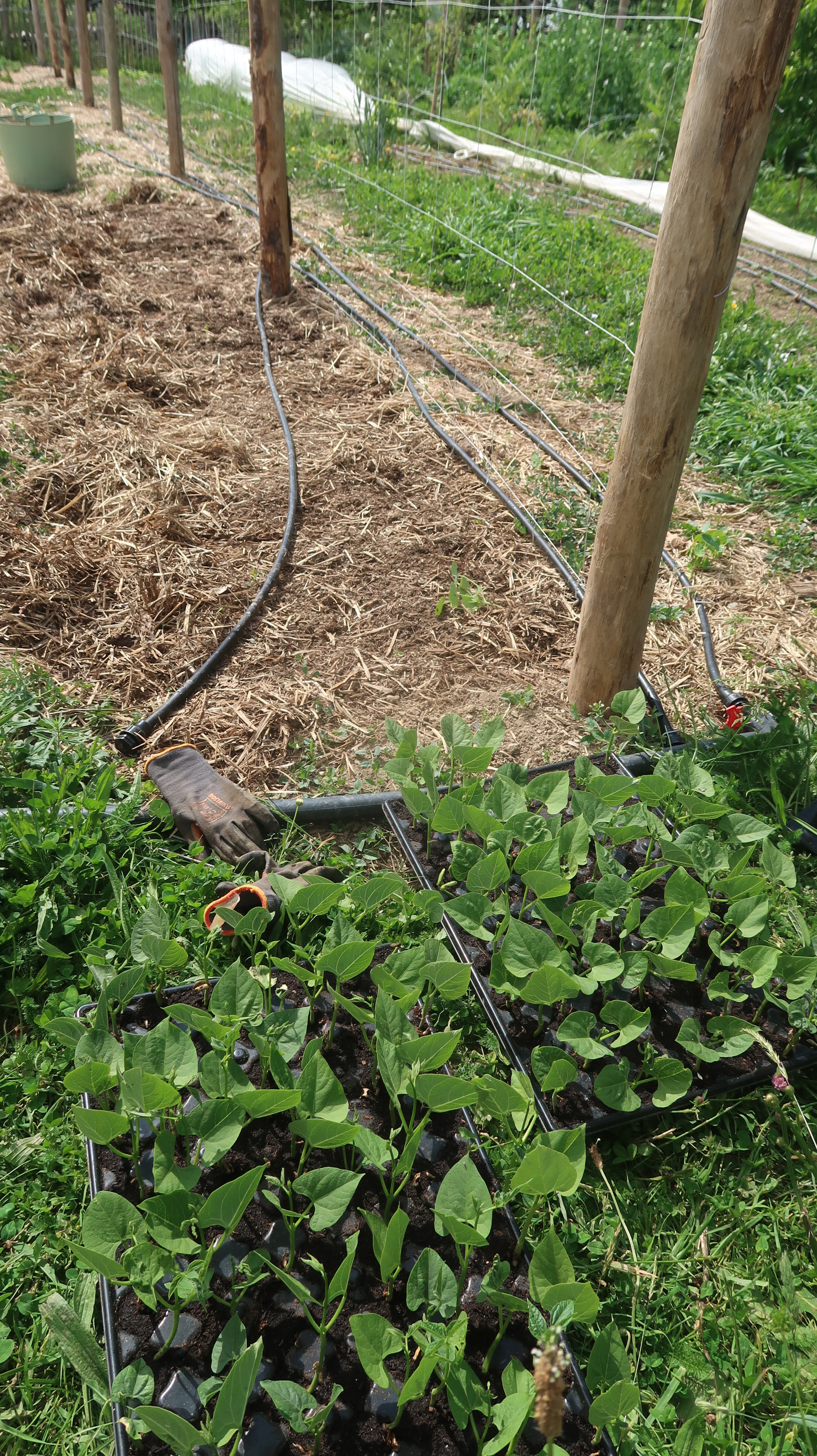 Dur dur l’installation des haricots verts !😅 Il a fallu installer la structure qui les maintiendra en place. Je plante ici des haricots verts à rame. Ils pourront grimper à plus de 2 mètres !🙂 Je les sème, également, avant plantation dans des alvéoles pour qu’ils se développent à l’abri des limaces et autres prédateurs🐌.
